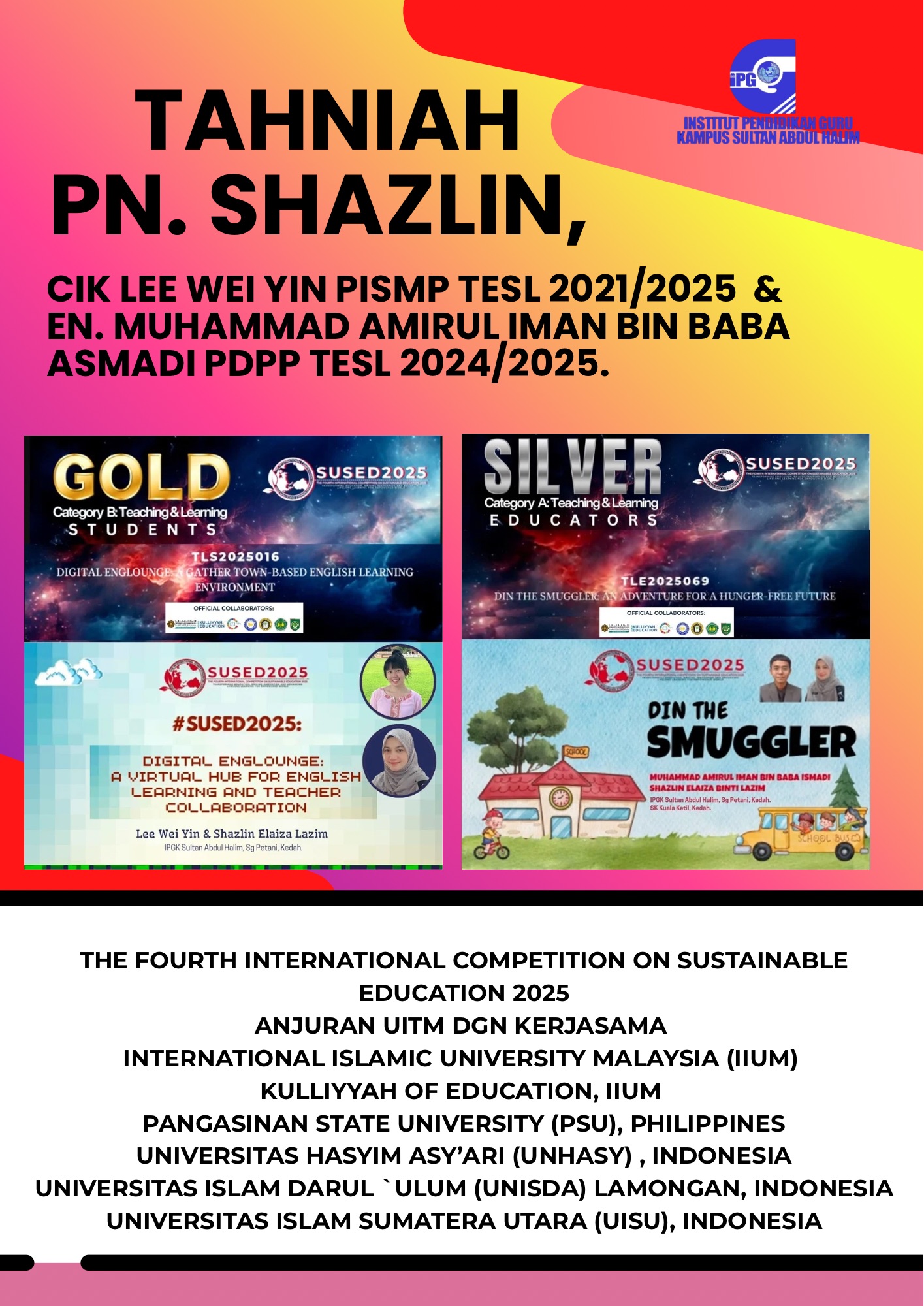 IPG Kampus Sultan Abdul Halim 08000 Sungai Petani,Kedah Darul Aman,Malaysia. Tel : +604-4218621 Fax : +604-4218582 GPS Koordinat : N 05.62884 E 100.52290